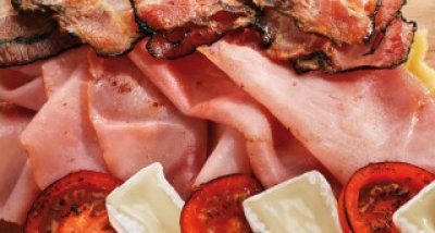 šunka, sýr, máslo, okurka, rajče, ledový salát