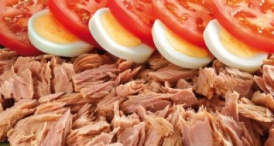 tuňák, rajče, vajíčko, dresing, ledový salát